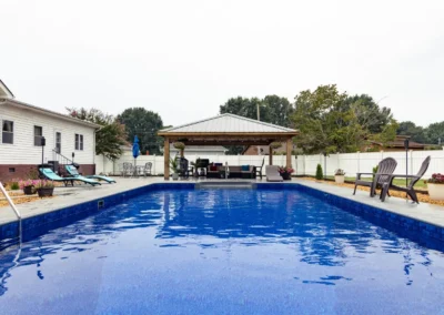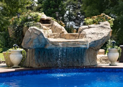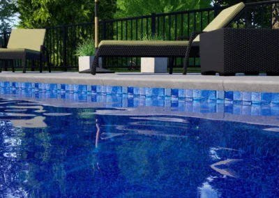 Sea Wall: The Sea Wall pattern showcases a grid of square tiles, each with a unique blend of cobalt and sky blue, accented with touches of sandy hues. The design evokes the sturdy, textured appearance of a sea wall standing resilient against the tides, offering a sense of strength and stability to the pool’s aesthetic.